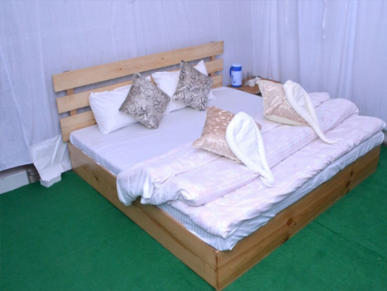 Deluxe Tents : In Deluxe tents we have tasteful interiors for a memorable stay. Clean Washrooms : We Offer cots , quilts , Blankets, pillow , towel and bedsheets. Wooden furtinture , luggage racks and spring mattresses.